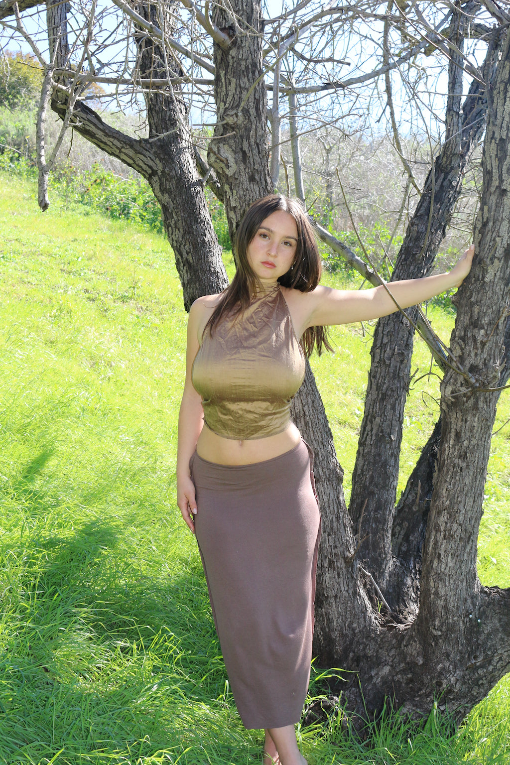 Hand sewn out of raw gold silk, the Eden Top is a secure form fitting halter. Lined with elastic at the sides of the bust, with the right amount of coverage. This backless top features adjustable ties at the neck and waist to ensure a perfect fit, specific to you.